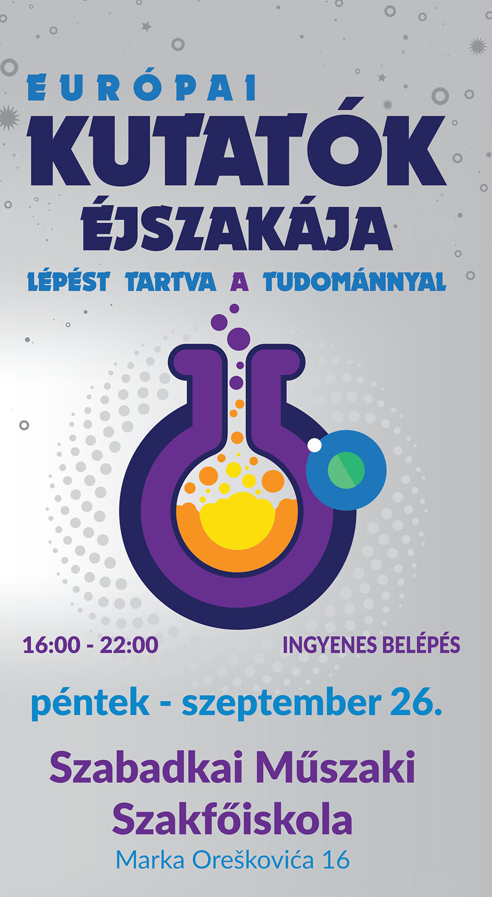 Szabadkán a Kutatók Éjszakája 16 és 22 óra között a Szabadkai Műszaki Szakfőiskola épületében (Marka Oreškovića utca 16.) és 17 és 22 óra között a Tinker Labs helyszínén (Blaška Rajića utca 26.) várja az érdeklődőket.