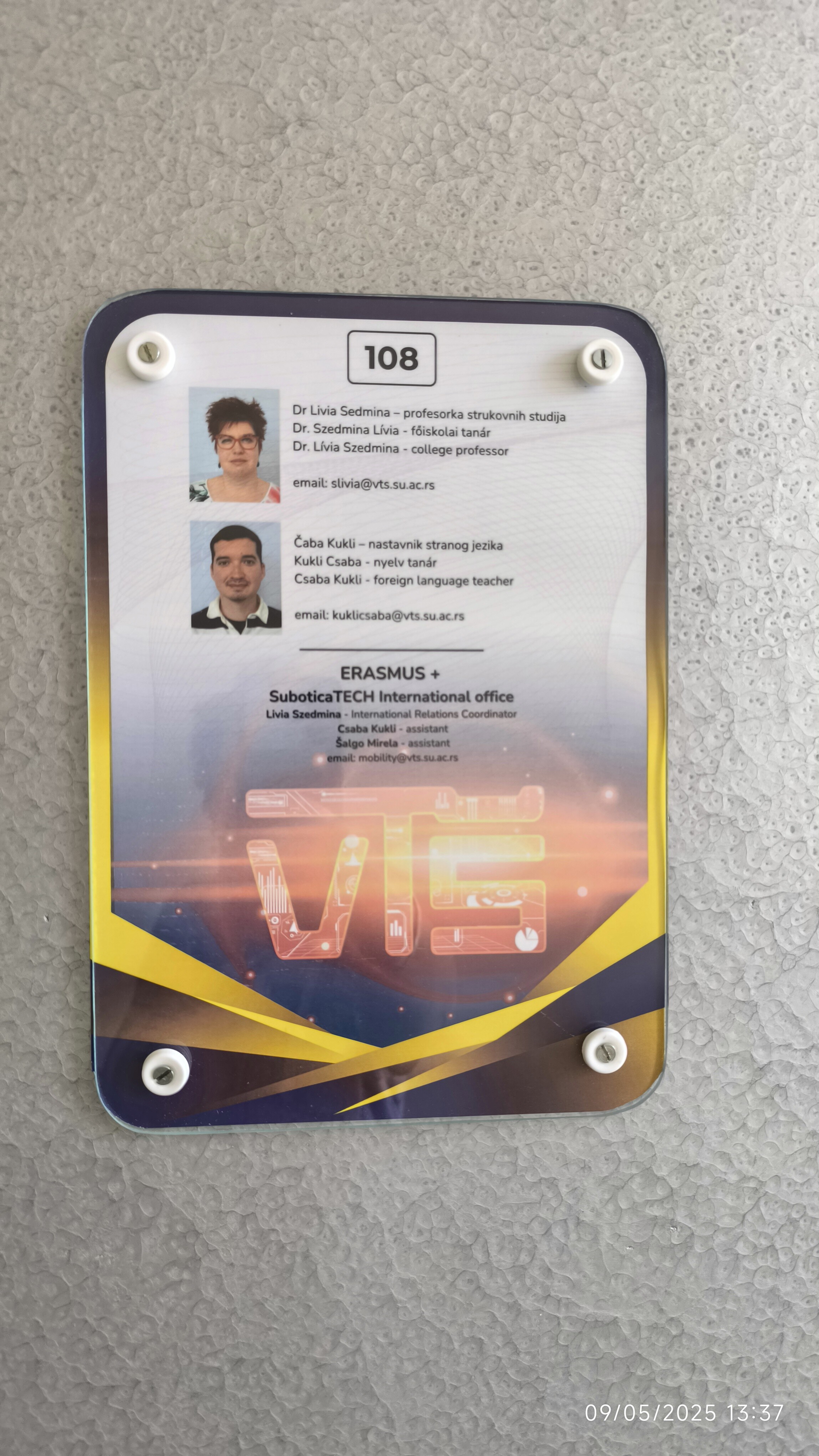 For incoming students and staff, the tasks include processing the Learning Agreement, working in close coordination with the coordinators of the study programs. Also, issues related to accomodation, health insurance, information concerning travel arrangements, providing information about the College and the study courses fall under the responsibilities of the International Office. For Incoming staff, the International Office is the prime source of information regarding their mobility and stay, while incoming students will also be put in contact with the Student Parliament at Visoka tehnicka skola strukovnih studija Subotica and their Representative for Incoming students.