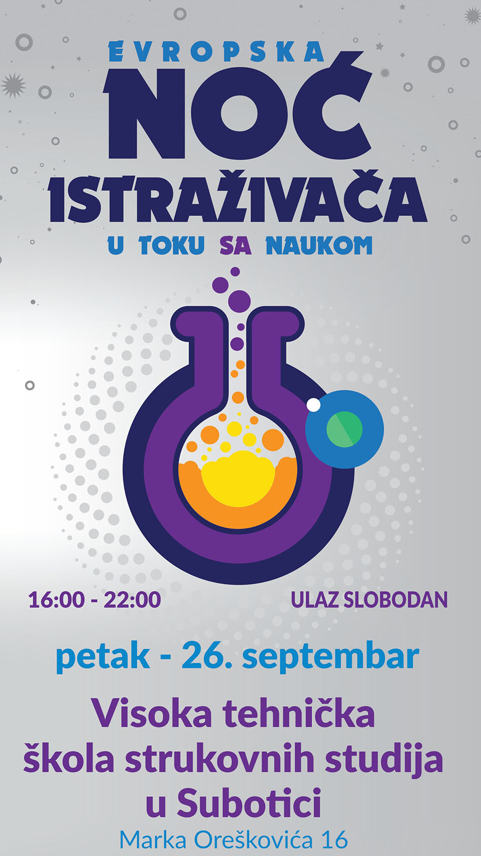 У Суботици ће се Ноћ истраживача одржати од 16 до 22 часа у просторијама Високе техничке школе струковних студија (Марка Орешковића 16) и од 17 до 22 часа у просторијама Тинкер Лабс-а (Блашка Рајића 26).