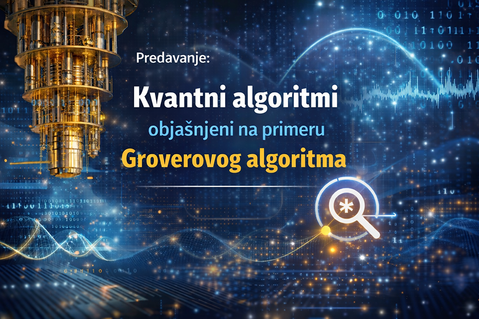 Predavanje će održati dr Filip Bažo, koji će kroz primer jednog od najpoznatijih kvantnih algoritama približiti savremene pravce razvoja kvantnog računarstva i njegov značaj za budućnost informatike.