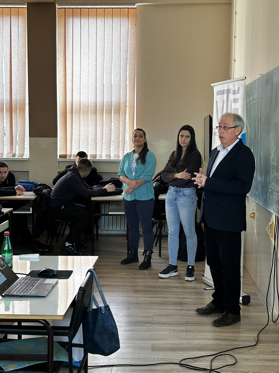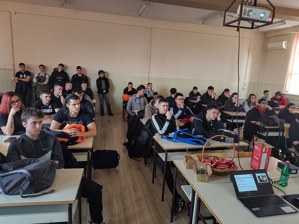 Ispred naše škole promociji su prisustvovali dr Zlatko Čović, dr Imre Nemedi, Dragana Radaković Toković, kao i studentkinja druge godine Informatike Helena Bergman, koja je sa učenicima podelila svoja studentska iskustva.